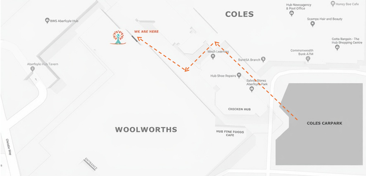 The Aberfoyle Park office is located within the Hub Shopping Centre. There are bus stops close-by. If you are driving, the easiest place to park is the Coles Shopping Centre Car Park.